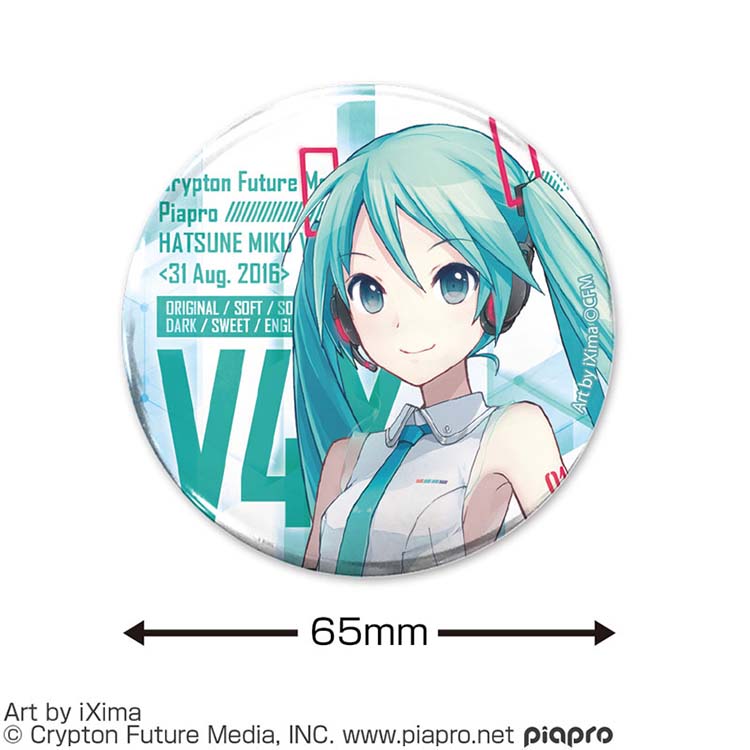 Hatsune Miku V4X now available as a large 65mm can badge!